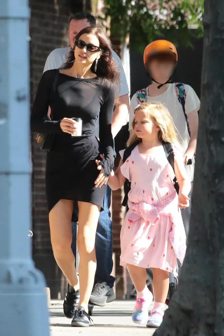 На этот раз русская красавица вышла в город в черном «total луке». Стиль Ирины Шейк состоял из платья длиной до середины бедра в сочетании со спортивной обувью и узкими солнцезащитными очками. Пригодилась и небольшая сумочка, с помощью которой модель пряталась от вездесущих папарацци. В свою очередь, дочь 38-летней модели, которая несла на спине гигантский рюкзак, была одета в розовое платье. Девичий стиль Леи дополнили яркие спортивные туфли.