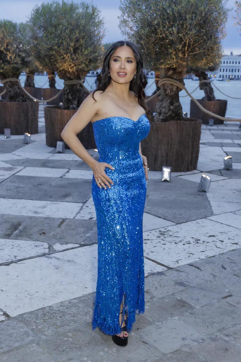 Элегантные женщины были сфотографированы во время мероприятия «Fondazione Cini, Isola Di San Giorgio», когда они были одеты в расшитые пайетками платья (Сальма в синем, Матильда в серебре) и терпеливо позировали для фото, как и подобает настоящим профессионалам. 57-летняя любительница дорогих брендов дополнила свой эффектный образ сумкой Balenciaga стоимостью 10 000 долларов.