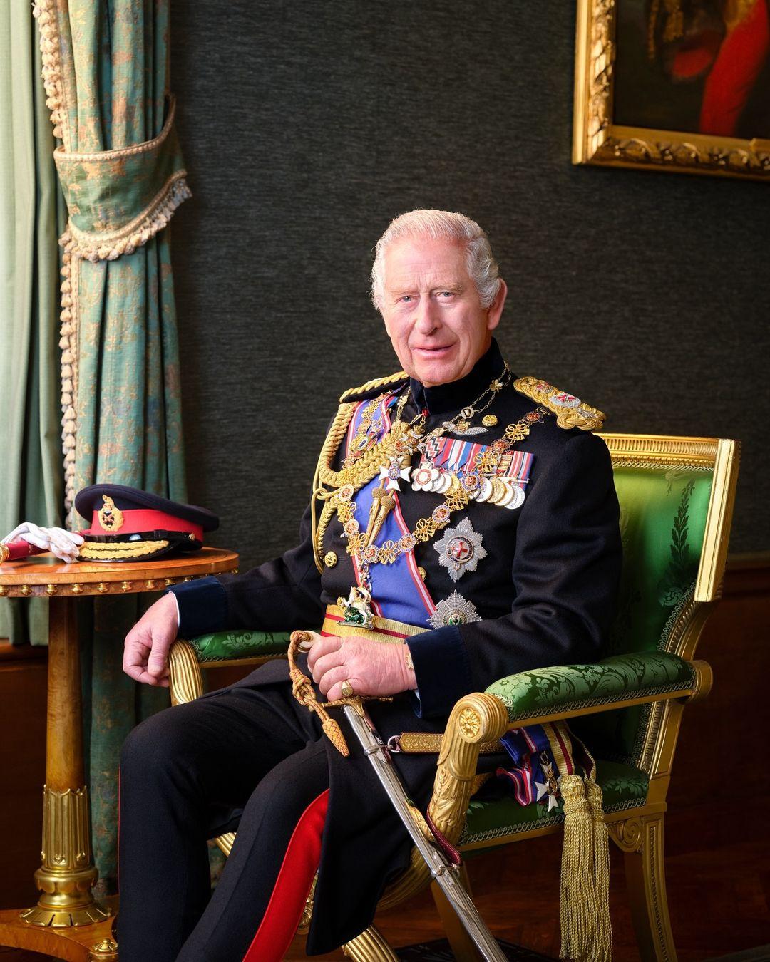 Новое фото короля, который является главой вооруженных сил, было опубликовано 29 июня. На портрете, сделанном в Большом коридоре Виндзорского замка в ноябре 2023 года, изображен 75-летний британский монарх сидящим в полном парадном фельдмаршальском сюртуке со своими медалями, мечом и наградами.